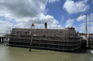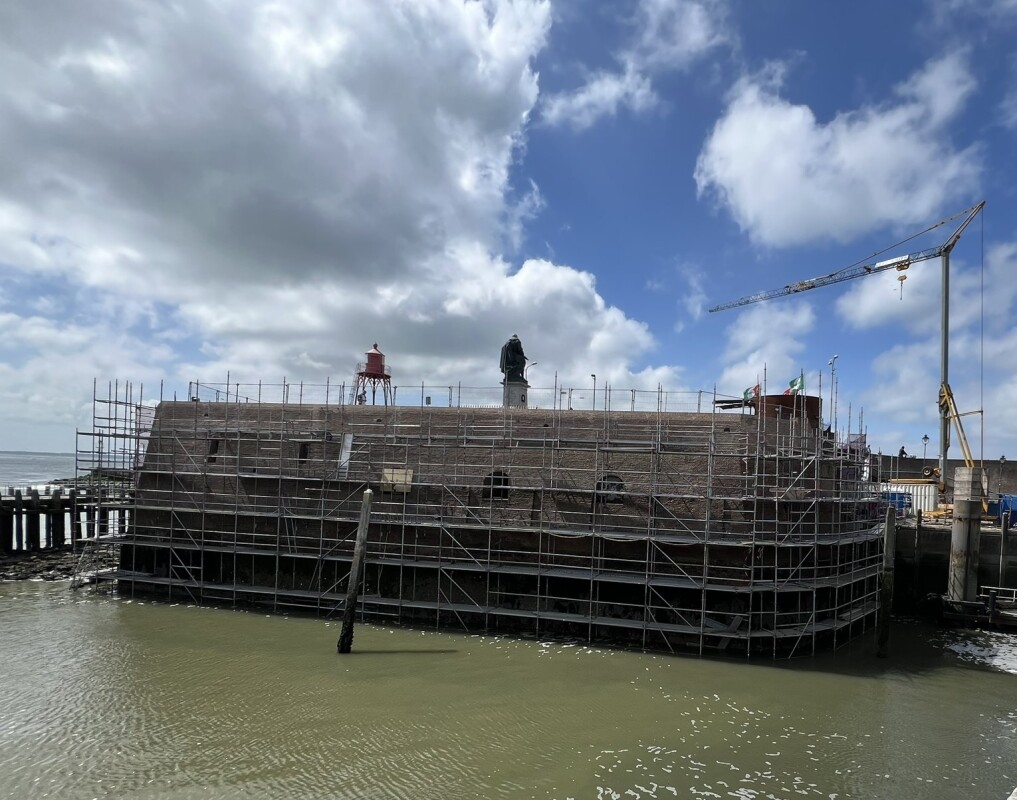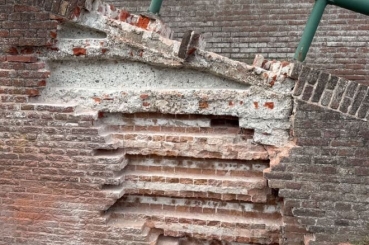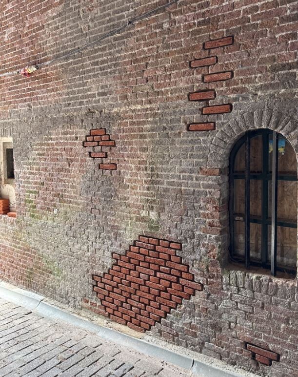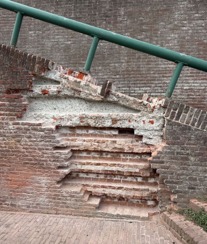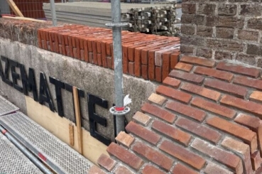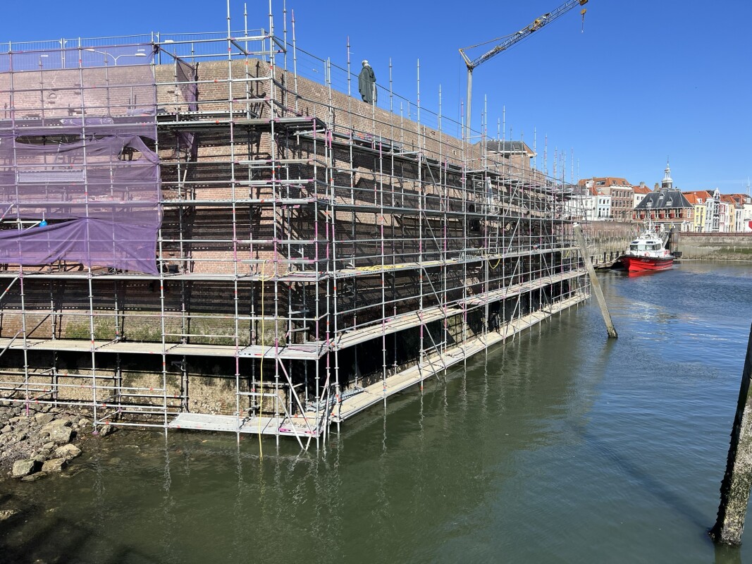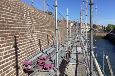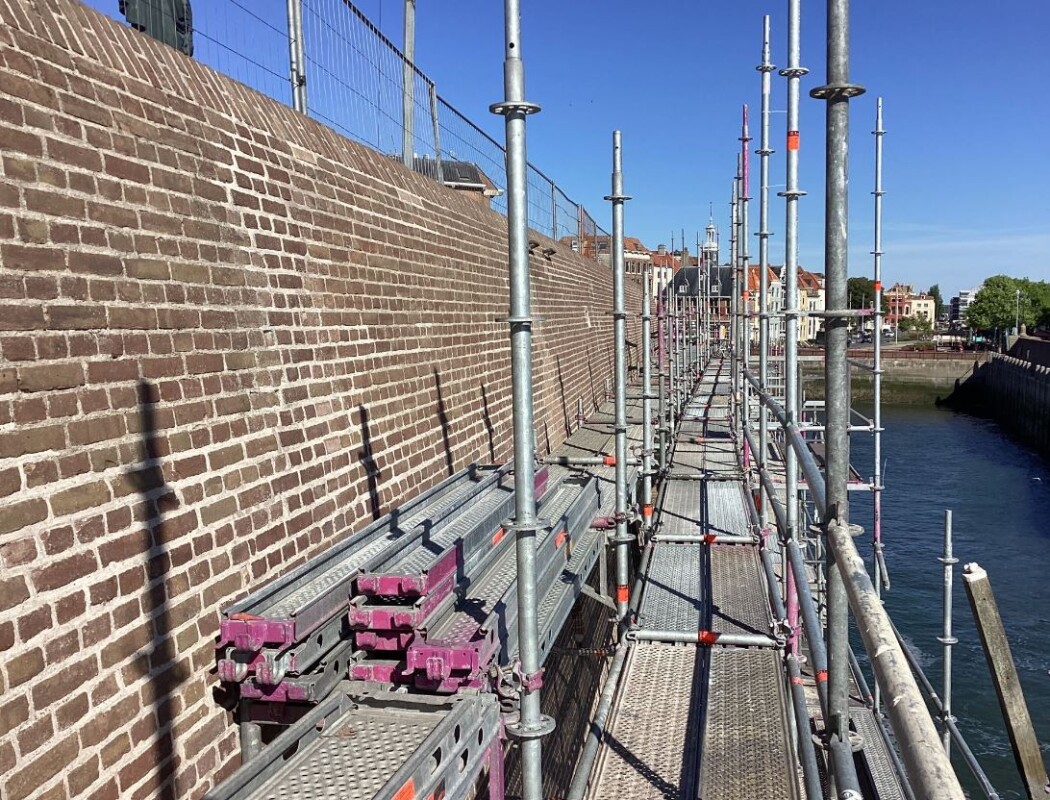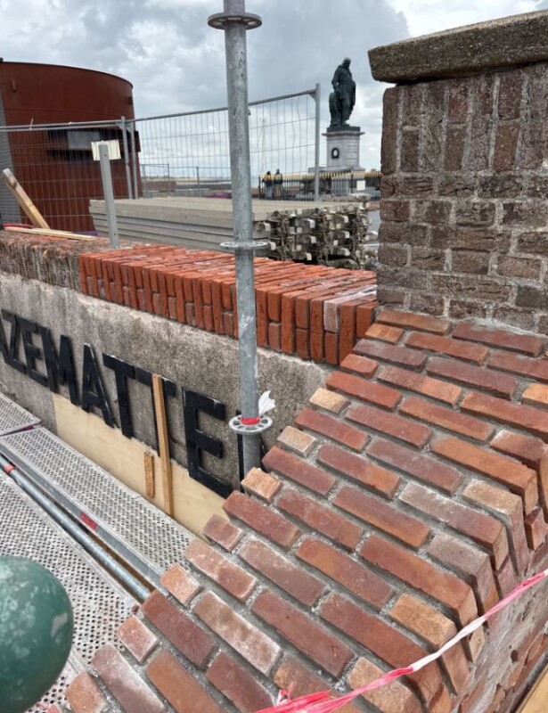 Foto 2 van 9 - Overzicht vanuit loodswezen Foto 3 van 9 - Overzichtsfoto tijdens restauratie Foto 4 van 9 - Muren in de steiger Foto 5 van 9 - Herstel metsel- en voegwerk Foto 6 van 9 - Herstel metselwerk bij trap Foto 7 van 9 - Herstel metselwerk bij kazematten Foto 8 van 9 - Herstel rollagen Foto 9 van 9 - Resultaat na restauratie